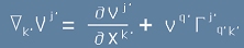 за ковариантна производна на вектора V по координатните оси. Да погледем лявата страна на [3].